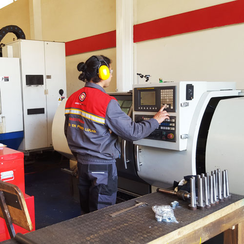 Ejes, Rodillos, sproket, cremalleras, polines, vidas de descortezadores, yunques de desgastes, guías, laterales, holder descortezadores fabricación y montajes de líneas de producción etc.